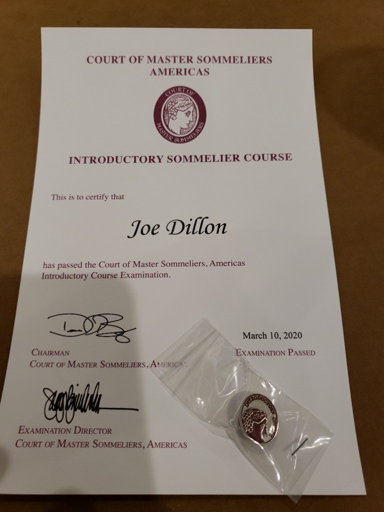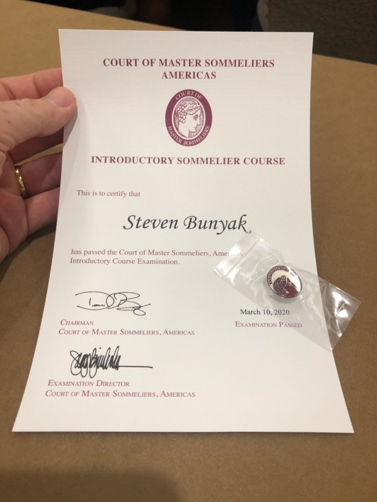 Congratulations to Steve and Joe who successfully completed the rigorous course and examination to become Level 1 Introductory Sommeliers in the Court of Master Sommeliers, Americas. You really earned that pin. I was there to celebrate literally hours after the results came in. Congratulations! Are you going for Level 2 next?