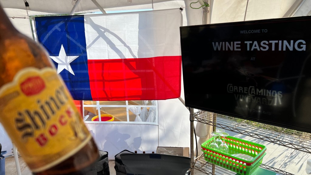 Last weekend, I held a Texas wine class at Correcaminos Vineyard in Ramona, CA. Not only was wine served, but the attendees also enjoyed some Shiner Bock beer and local smoked brisket from Pete’s BBQ in Ramona. A fun time was had by all.